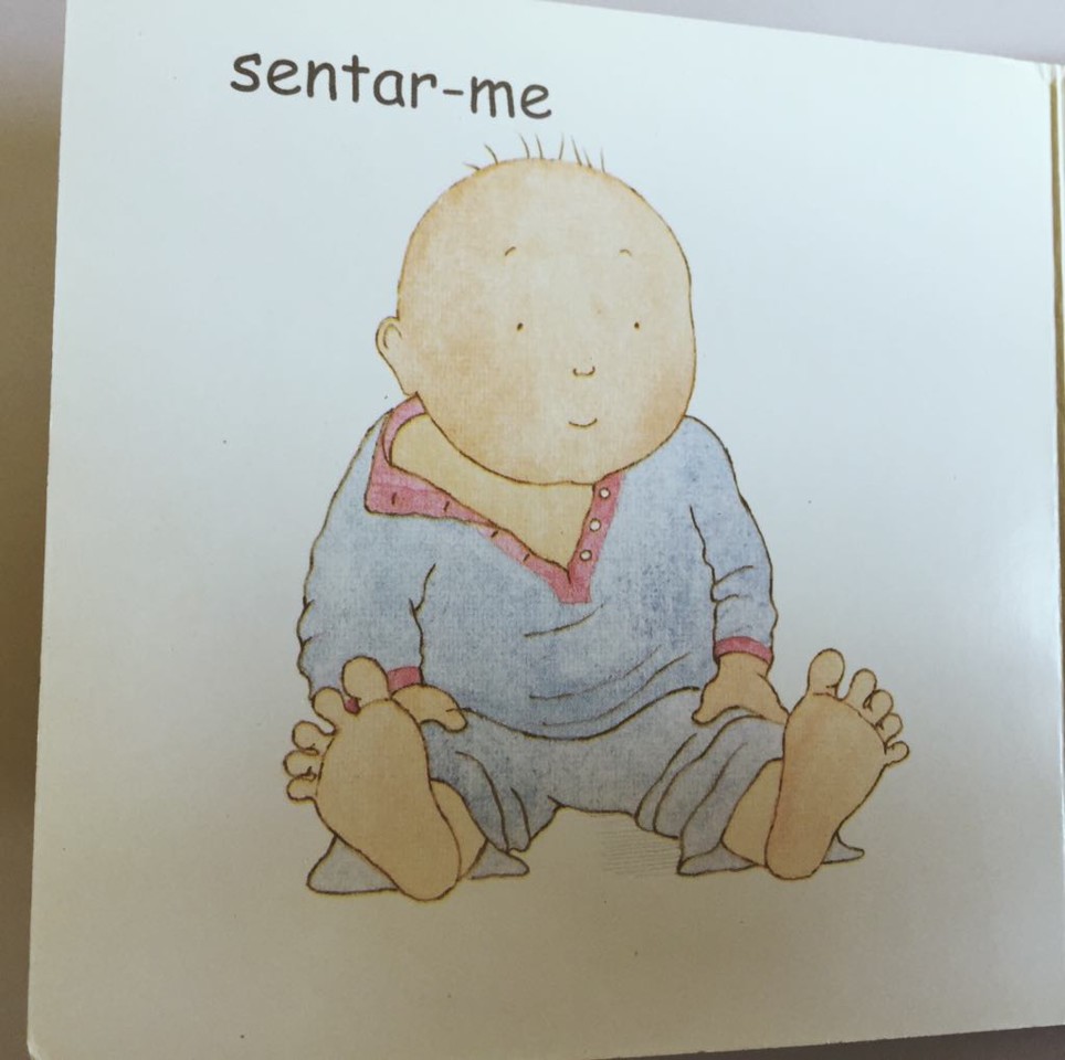 ilustração: imagens simples em tons apelativos (não excessivos) sobre fundo branco. as ilustrações apresentam, para além do ato conseguido (sentar-me, gatinhar, ..), uma bem definida expressão facial – excelente para a identificação afetiva da criança.