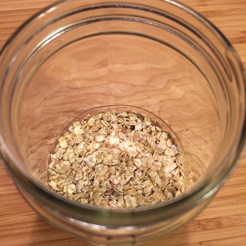coloca os flocos de aveia e o leite num frasco com tampa e deixa repousar por 10m.